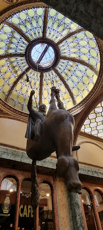 Zajímavá nákupní pasáž s vtipným koněm visícím ze stropu